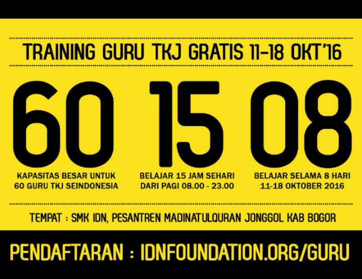Berawal dari postingan teman di grup WhatsApp SMK TamanSiswa 2 Jakarta, yang mengabarkan ada training gratis khusus untuk guru-guru TKJ di jonggol jawa barat, 11 s/d 18 oktober lalu saya berkesempatan mengikuti training guru tkj gratis. Gratis ? Iya gratis. Materinya apa saja ?